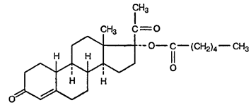 17-α-Окси-19-норпрегнен-4,3,20-дион-17-гексаноат (капронат), или 17-α-окси-19-норпрогестерон (капронат):