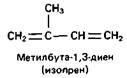 Углеводороды встречаются в природе не только в горючих ископаемых, но также и в некоторых материалах биологического происхождения. Натуральный каучук является примером природного углеводородного полимера. Молекула каучука состоит из тысяч структурных единиц, представляющих собой метилбута-1,3-диен (изопрен); ее строение схематически показано на рис. 4. Метилбута- 1,3-диен имеет следующую структуру: