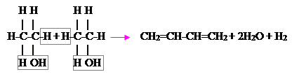 Сырьём для получения бутадиена служит этиловый спирт. Получение бутадиена основано на реакциях дегидрирования и дегидратации спирта. Эти реакции идут одновременно при пропускании паров спирта над смесью соответствующих катализаторов: