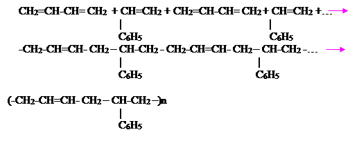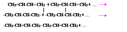 а) полимеризация – процесс соединения двух, трёх и более молекул полимера, с образованием вещества того же состава, но большего молекулярного веса. При этом происходит разрыв и образование новых химических связей, следовательно, полимеризация – типичная химическая реакция. Процессы полимеризации относятся к цепным реакциям, то есть к таким процессам, при которых в веществе происходит образование активных частиц, способных вызвать ряд последовательных превращений вещества. Реакции этого типа могут протекать с огромной, взрывной скоростью. Реакция полимеризации, начавшись в одном месте, быстро распространяется по всей массе вещества.