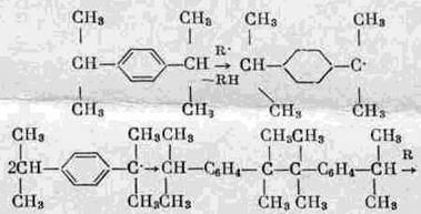 При молярном соотношении инициирующей перекиси к исходному углеводороду 2:1 молекулярный вес полимера достигает 10 000 и более. Благодаря использованию реакции полирекомбинации, в полимер могут быть превращены насыщенные углеводороды, эфиры и другие вещества, не способные полимеризоваться обычными путями.