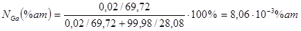 Таблица 4 - Результаты расчета распределения галлия в кремнии