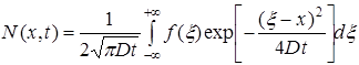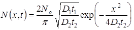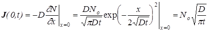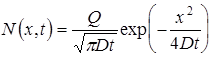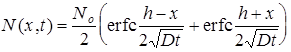 Решение диффузионного уравнения при этих условиях находится из предыдущего при h ® 0и условии, что количество диффузанта в источнике Q=No h.
