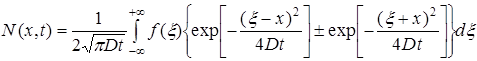 1.3.4 Распределение примеси при диффузии из бесконечно тонкого слоя в полубесконечное тело с отражающей границей