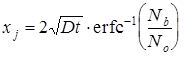 В случае, если продолжительность второй стадии не очень велика по сравнению с первой, или, иными словами, D2 t2 ³ D1 t1 , предположение о том, что диффузионный слой, образовавшийся в результате загонки, будет вести себя как тонкий источник неверно. В этом случае решение диффузионного уравнения будет выглядеть следующим образом