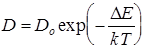 где предэкспоненциальный множитель (постоянная диффузии) Do и энергия активации диффузииDE - справочные величины.