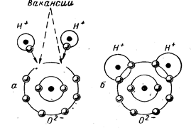 ), связанных между собой двумя электронами, которые легко замещают вакансию двух электронов наружной орбиты атома кислорода, образуя в совокупности молекулу воды, с полной устойчивой восьмиэлектронной наружной