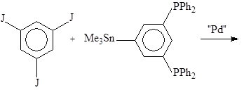 что позволяет выделить катализатор из реакционной смеси фильтрованием через мембрану. Один из возможных подходов к синтезу такого типа молекул быть основан на использовании 1,3,5-трийодбензола и приведен на схеме: