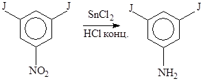 3,5-дийоднитробензол далее восстанавливали до 3,5-дийоданилина раствором хлоридом олова (II) в концентрированной соляной кислоте.
