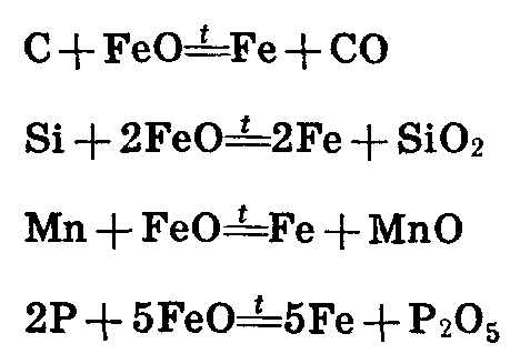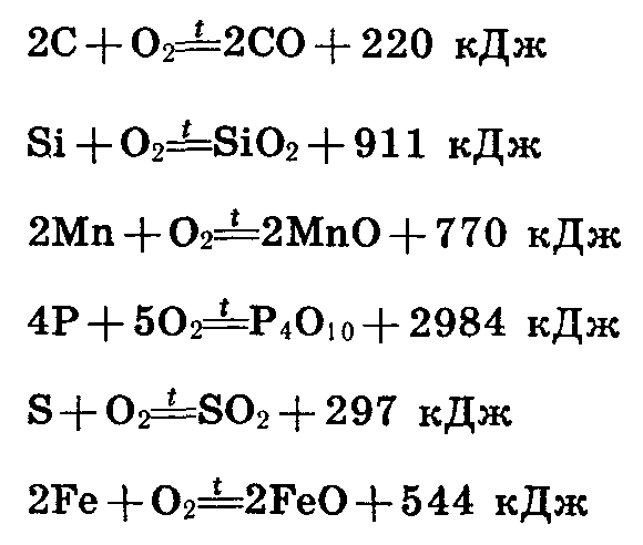 Основной химический процесс: содержащиеся в жидком чугуне элементы (углерод, кремний, марганец, фосфор и сера) окисляются кислородом: