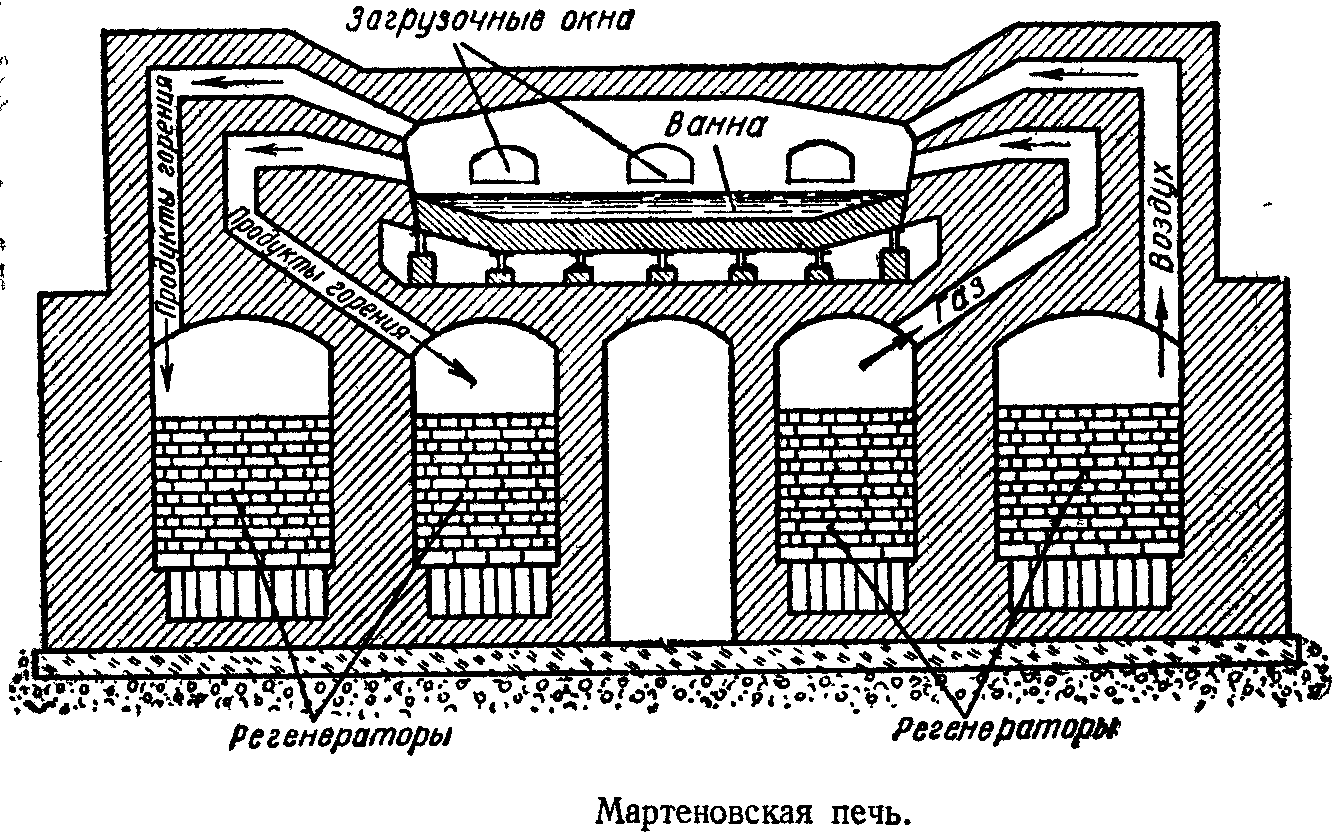 В конце процесса добавляют раскислители. За изменением состава сплава тщательно следят, руководствуясь данными экспресс-анализа, позволяющего дать ответ о составе стали в течение нескольких минут. Готовую сталь выливают в ковши. Для повышения температуры пламени газообразное топливо и воздух предварительно подогревают в регенераторах. Принцип действия регенераторов тот же, что и воздухонагревателей доменного производства. Насадка регенератора нагревается отходящими из печи газами, и когда она достаточно нагреется, через регенератор начинают подавать в печь воздух. В это время нагревается другой регенератор. Для регулирования теплового режима печь снабжается автоматическими приспособлениями.