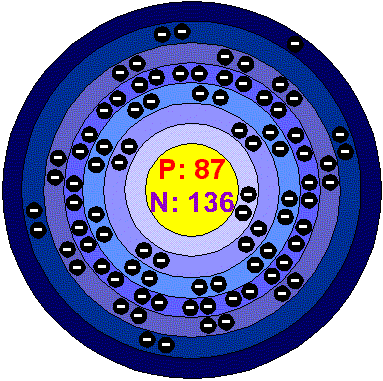 Електронна конфігурація: 1s2 2s2 2p6 3s2 3p6 3d10 4s2 4p6 4d10 4f14 5s2 5p6 5d10 6s2 6p6 7s1