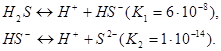 Сероводород — типичный восстановитель. В кислороде он сгорает. Раствор сероводорода в воде представляет собой очень слабую сероводородную кислоту, которая диссоциирует ступенчато и в основном по первой ступени: