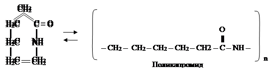 Капрон – полиамидное волокно, получаемое из поликапроамида, образующегося при полимеризации капролактама (лактама аминокапроновой кислоты):