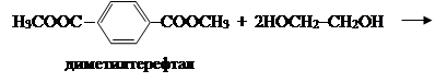 Диметилтерефталат сначала нагревают при 170-280o С, с избытком этиленгликоля. При этом происходит переэтефикация и получается диэтилолтерефталат: