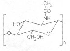 Хитин - линейный аминополисахарид, состоящий из N-Ацетил-2-амино-2-дезокси-О-гликопиранозных звеньев.