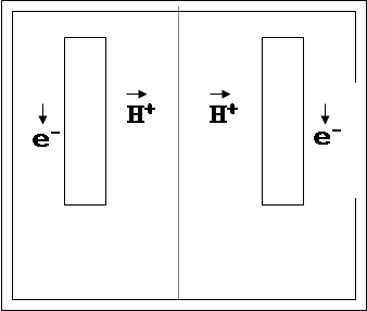 Проведем несложный опыт. В закрытый сосуд с разбавленным раствором серной кислоты погружены два платиновых электрода. Один из них обтекается водородом, другой - кислородом. Газы поступают из помещенных под электродами трубок, которые отделены друг от друга полунепроницаемой диафрагмой. Она препятствует прямому взаимодействию топлива, то есть водорода с кислородом. На аноде (положительном полюсе) молекулы водорода (Н2 ) благодаря каталитическому действию поверхности платины диссоциируют на два атома (2Н), которые переходят в раствор в виде ионов Н+ , оставляя свои электроны на платиновом аноде. Водородные ионы легко проходят через полунепроницаемую диафрагму в другую половину сосуда, на катоде (отрицательный полюс) кислород соединяется с атомами водорода или с водородными ионами и электронами, образуя воду. Если соединить оба полюса топливного элемента, то свободные электроны двинутся по нему от катода к аноду - в цепи потечет электрический ток.
