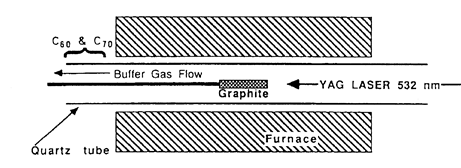 Рис. 2 . Схема установки лазерного испарения графита для получения фуллеренов и эндометаллофуллеренов.
