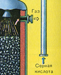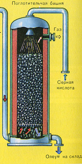 Образовавшийся оксид серы SO3 выходит из контактного аппарата и через теплообменник попадает в поглотительную башню.