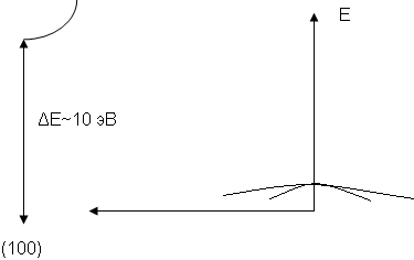 = 0, однако минимум валентной зоны проводимости оказывается смещенным по оси. В результате значение ΔЕ возрастает до ~10 эВ, вдвое превышая значение ΔЕ для алмаза.