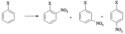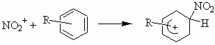 Нитрование - введение нитрогруппы – NO2 в молекулы органических соединений. Может проходить по электрофильному, нуклеофильному и радикальному механизмам; активные частицы в этих реакциях - соответственно катион нитрония NO2 , нитрит - ион NO2 и радикал NO2 . нитрование может осуществляться по атомам С, N, О замещением атома водорода (прямое нитрование) или других функциональных групп (заместительное нитрование) либо в результате присоединения группы NO2 ; по кратной связи.