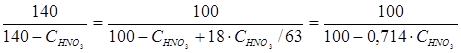 При добавлении воды к азотной кислоте диссоциация HNO3 c образованием нитроний-катиона NO2 + подавляется почти полностью, концентрация этих ионов становится ничтожно малой.
