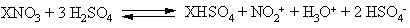 В дальнейшем было установлено (Титов, Инголд, Беннет), что нитросерная кислота в водной среде диссоциирует с образованием нитроний-катиона: