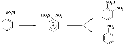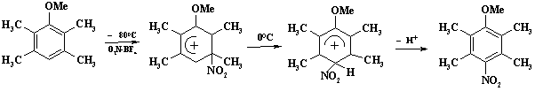 Нитрование ароматических углеводородов смесями азотной и серной кислот протекает по ионному механизму. В. В. Марковников указал, что при взаимодействии серной и азотной кислот образуется нитросерная кислота:
