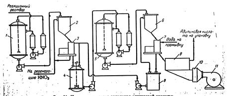 Ниже приводится технологическая схема выделения адипиновой кислоты и регенерации азотной кислоты (Рис.7).