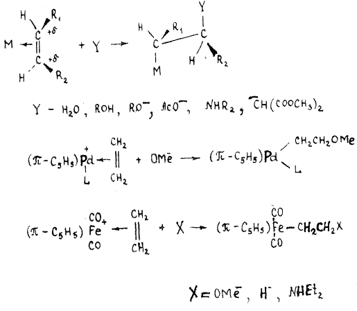 Наиболее характерной реакцией π-комплексов олефинов, относящихся к I типу, является реакция с нуклеофильными реагентами.