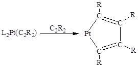 Металлоциклопентадиены из алкинов получены в реакциях комплексов Pt(0), Pd(0), Co(I), Fe(0), Rh(I), Ir(I) и Ti(II).