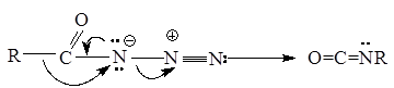 Превращение ацилазидов в изоцианаты, как показано ниже, представляет собой согласованный процесс. Эта реакция носит название перегруппировки Курциуса :