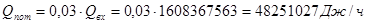 Qвых = 141911,6 - 96621,5 = 45290,1 (Дж/час)