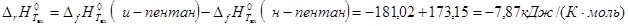Для изомеризации н-пентана в изопентан вычислить перепад температур в зоне реакции при адиабатическом ведении процесса. Процесс протекает при давлении 1 атм. В реактор подается 10 т/час н-пентана при 650К и 25 молей водорода на 1 моль пентана при 900К. Степень конверсии н-пентана 10, 20, 50, 70%. Селективность процесса 100%. Потери тепла в окружающую среду составляют 3% от прихода тепла в реактор. Провести графическую и аналитическую зависимости адиабатического перепада температур от степени конверсии н-пентана. Аргументировать технологические приемы, используемые при осуществлении промышленной изомеризации углеводородов.