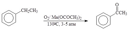 Ацетофенон производится в промышленности каталитическим окислением этилбензола кислородом воздуха: