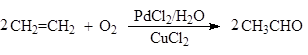 Окисление этилена в присутствии хлоридов палладия (II) и меди (II) приводит к образованию ацетальдегида (Вакер-процесс):