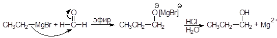 Присоединение к формальдегиду приводит к образованию первичных спиртов.