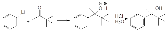 Фениллитий 3,3-Диметил-2-бутанон 3,3-Диметил-2-феил-2-бутанол