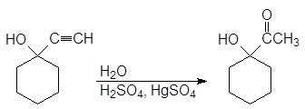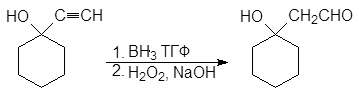 Гидратация полученного алкинола приводит к образованию a-гидроксикетона, а гидроборирование-окисление -b-гидроксиальдегида.