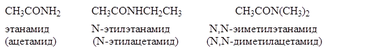 Амидами называют производные кислот, в которых гидроксильная группа заменена на аминогруппу. Амиды можно рассматривать также как ацильные производные аминов. По номенклатуре IUPAC названия амидов строятся из названия соответствующей кислоты заменой окончания -овая кислота на -амид :