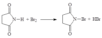 Бромированием сукцинимида в разб. H2 SO4 в присутствии NaBr в промышленности получают N-бромсукцинимид (NBS):