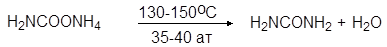 В промышленности мочевину получают из двуокиси углерода и аммиака через карбамат аммония, который при 130-150о С и давлении 35-40 ат дегидратируется: