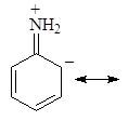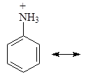 Делокализация электронной пары делает ее с одной стороны менее доступной для протона, а с другой стороны, что еще важнее, она стабилизирует молекулу. У протонированного анилина имеется лишь две граничные структуры: