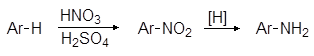 Восстановление ароматических нитросоединений (1.2.3) в сочетании с нитрованием аренов является главным способом получения аминов.