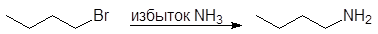 Наиболее очевидный путь синтеза аминов заключается в алкилировании аммиака или амина алкилгалогенидами. Однако, при проведении этой реакции возможно многократное алкилирование. Недостатком этой реакции является то, что ее трудно остановить на какой-либо стадии. Первичные амины все же можно получать при использовании большого избытка аммиака, например: