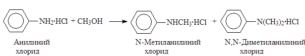 При нагревании спиртов с галогенидами аммония в зависимости от соотношения реагентов могут быть получены первичные, вторичные или третичные амины. Алкилирование анилина обычно ведется спиртами в присутствии кислот, причем получают смесь N-алкил- и N,N-диалкиланилинов: