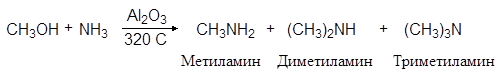 В промышленности алкилирование аммиака проводится первичными спиртами в присутствии хромита меди или окиси алюминия и других катализаторов при 300о С. При этом образуется смесь аминов, которую далее разделяют ректификацией.