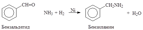 Многие альдегиды и кетоны превращаются в амины при нагревании с аммиаком и водородом в присутствии катализатора гидрирования:
