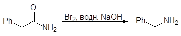 Первичные амины могут быть получены при действии на амиды брома в щелочной среде. Реакция проходит по механизму (16-М6).
