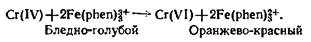 Если в избытке находится теллур, то Сг, образовавшийся по реакции, вновь восстанавливается теллуром в хром, который восстанавливает фенантролин железа, и т.д. Эта реакция сочетает индукцию и катализ. Она позволяет обнаружить чрезвычайно малые количества хрома. Ланг приводит предельное значение концентрации при определении хрома, равное 1:2–10. Циклические реакции в конце концов завершаются благодаря побочным реакциям, например реакции между Те и Сг с образованием Cr.
